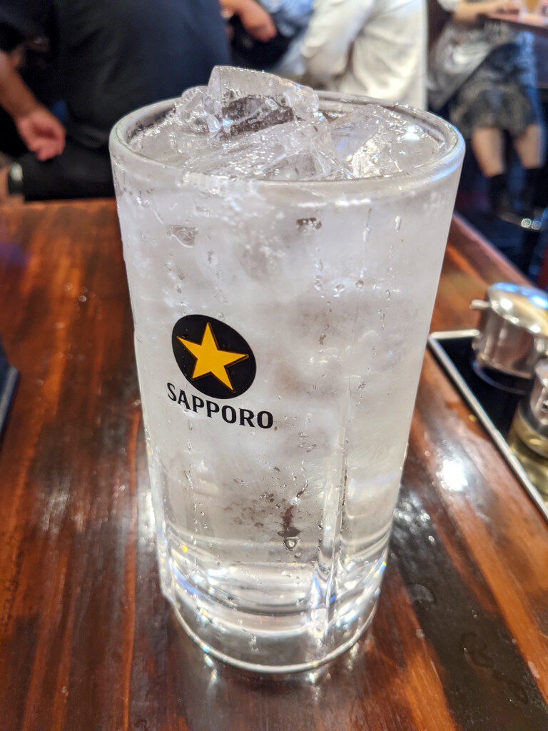 テーブルに設置してあるメニューの他に、その日のおすすめメニューがあってお店の壁に書かれているとのこと。店員さんによれば、私がお邪魔した時には「まかないカレー」がおすすめとのことであった。とりあえず、他の居酒屋では見かけないアテをお願いしてみた。まずはハチノスのニンニク和え。冷製のアテなので割とさくっと提供してもらうことができた。ボイルしたハチノスの食感と、ニンニク風味のタレがよく合って美味しい。チューハイに合うけれど、ビールにもよく合いそうだ。