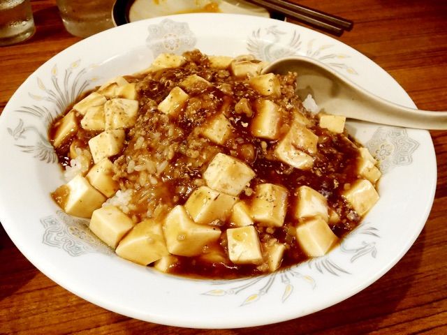 そして、最後のシメとして頼んでみたのが、土日限定の麻婆豆腐丼。単品でもオーダーできるし、定食でもオーダーできるようだけど、ここは敢えて丼で。意外とボリューム感があって、お腹いっぱいになった。こちらも中華料理屋さんの味。近頃は、やたら辛かったりシビれる麻婆豆腐を見かけることもあるが、こちらの麻婆豆腐はそんな感じではなかった。