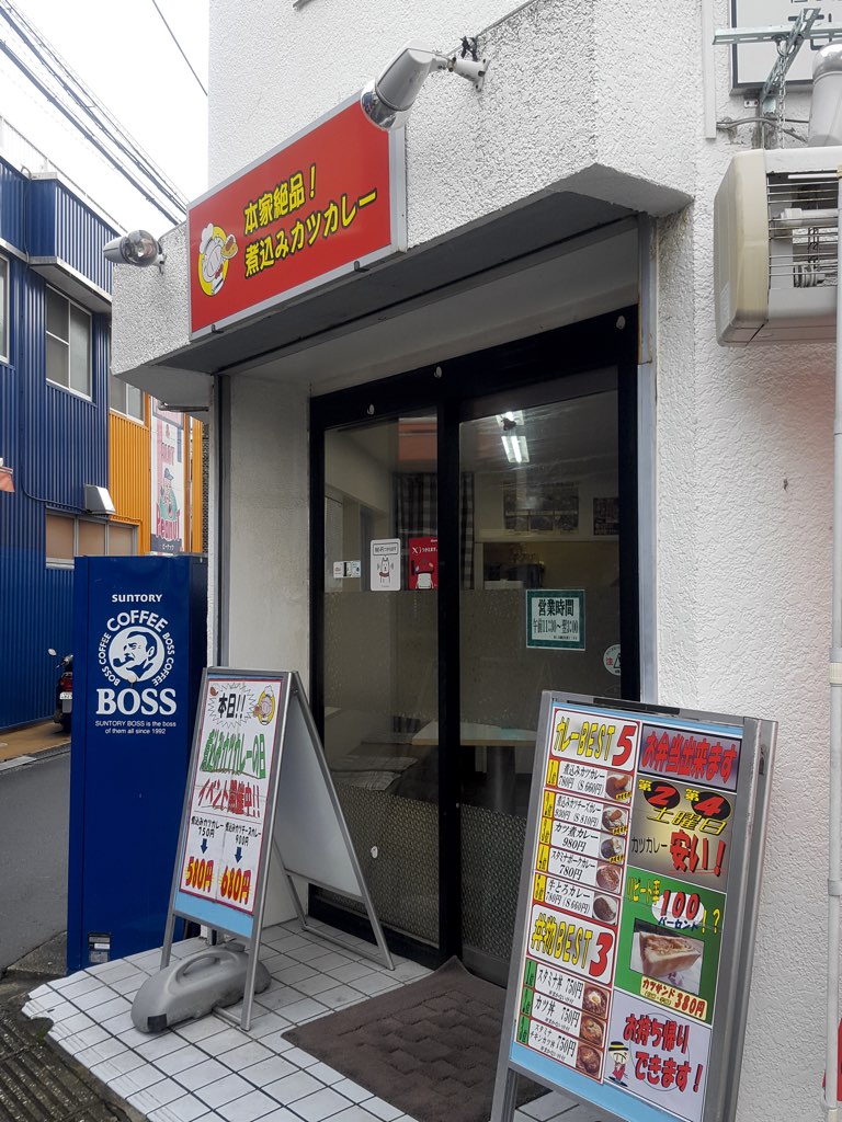 昔はきっと別の業態で営業してたんだろうなぁと思わされる、古びた店舗でカレー屋さんが営業していた。しかし、看板によれば、"煮込み"カツカレーって、煮込んだ豚バラをカツにしたものってことらしい。生肉をそのままカツにしてもフツーに旨いとは思うのだが、煮込んだ豚バラだと何か違うのだろうか…。